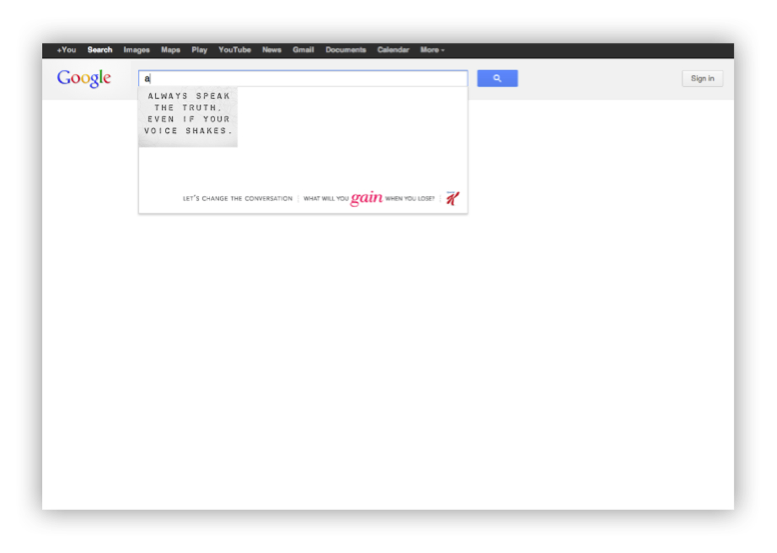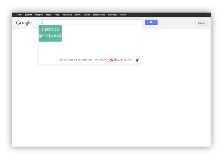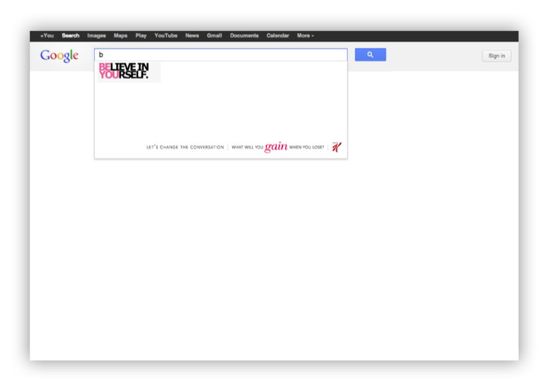 The most popular search words on New Year’s Day is weight loss. So to claim the first Monday after New Years as National Weigh-in Day, we designed an initiative to take over Google. No matter what you searched for that day, the first result would be an empowering and positive statement, brought to you by the kind folks at Special K. Although the idea ended up not going to market, Google loved it.
