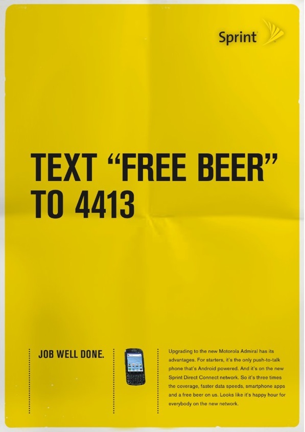 When Sprint introduced the first smart push-to-talk phone, it had to convince users with time on their contracts to go ahead and upgrade. So we demonstrated the power of the new phones by giving away free beer, food and advertising--with one caveat. You had to have Google Maps or be able to unlock QR codes to get it. Things you simply can’t do with the old phones on the old network.