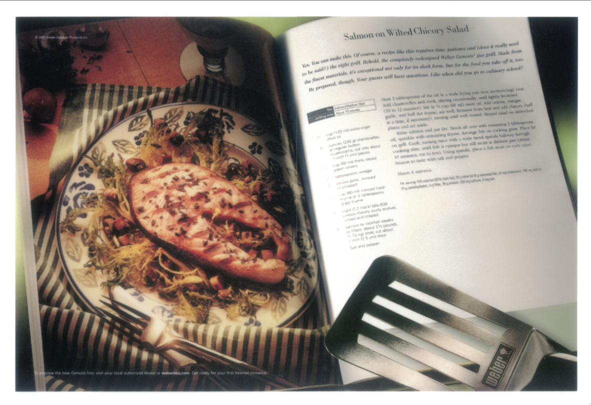 People who buy Weber Grills read cooking magazines cover to cover. So we highjacked actual recipes and replaced the introductory copy with copy about the most important ingredient--the grill.